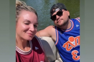 为庆祝“球衣日”,目前的Spectrum SportsNet湖人女记者Allie Clifton晒出自己与老公身穿詹姆斯骑士球衣的度假合影。